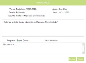 Uma das novidades é a possibilidade da escola enviar um pedido de autorização aos pais. Este módulo tem como objectivo facilitar, por exemplo, o pedido de autorização para uma visita de estudo.